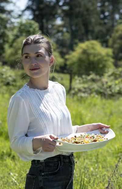 “With the theme of this issue built ‘food,’ I had endless options to explore for the recipe feature. For me though, cuisine really is nothing without the ingredients, and the ingredients are nothing without the places and people that grow and tend to them. We recently moved to a small hobby farm in the stunning agricultural gem that is the Blenkinsop Valley, which further inspired a farm-to-table style piece. This was the first feature we shot on our new property, and it couldn’t have been more stunning and inspiring. I hope you feel inspired by the setting and seasonal offerings as well.”