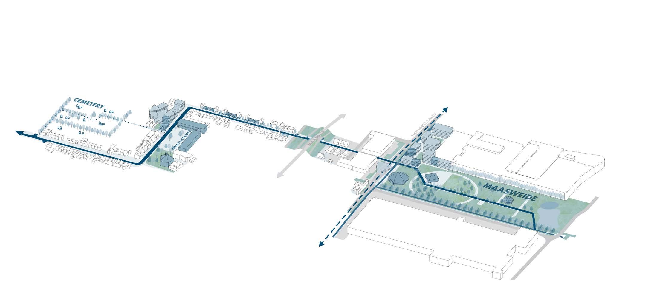 Both locations are implemented in daily urban life. The emergency location of Maasdijk is on the new important backbone/route, and makes the essential amenities within 10 minutes walking or 2-3 minutes cycling. The shelter in Binckhorst will be arranged in the urban park in the middle of the new developments, also located on the new main route crossing the neighbourhood.