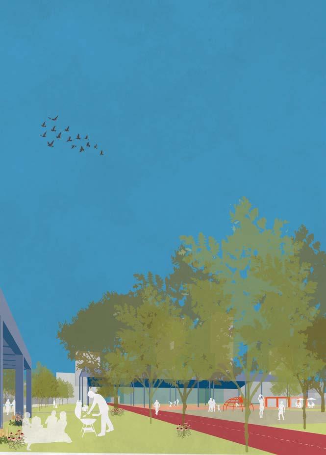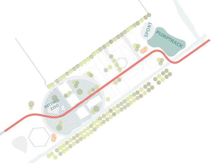The adaptive park of Maasdijk is characterised by the pavilion where work, education and recreation meet, the petting zoo, the pavilion for music glasses or other events and the sports area. With a lack of good green public space for all ages in Maasdijk now, this new park will become a highly valued location for the residents. Together with the pavilion that the residents can program, this can be seen as a permanent structures that function as a place-making in times without emergency shelter. The same goes for Binckhorst, the functions in the park and the pavilions stay intact. The pavilions can also be transformed into small supermarkets or information points for the asylum seekers.