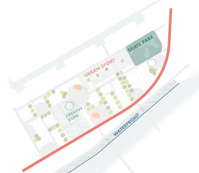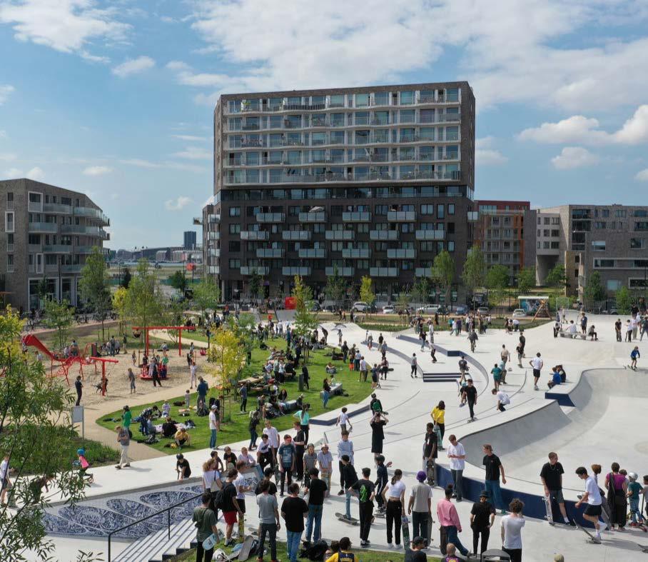 The landscape framework Families inspire the park of Maasdijk, where the elements of play and rest are essential. It is a park we see often in more family-oriented locations like the Wandelpark in Badhoevedorp or the Park de Hoge Weide in Leidsche Rijn, Utrecht. The faster urban dynamics of cities, the diverse groups of residents, and the characteristic elements of the old cement factory inspire Binckhorst Park. The Urban Sport Zone in Zeeburg, Amsterdam or Parkspoor Noord in Antwerp are good examples to take inspiration from.