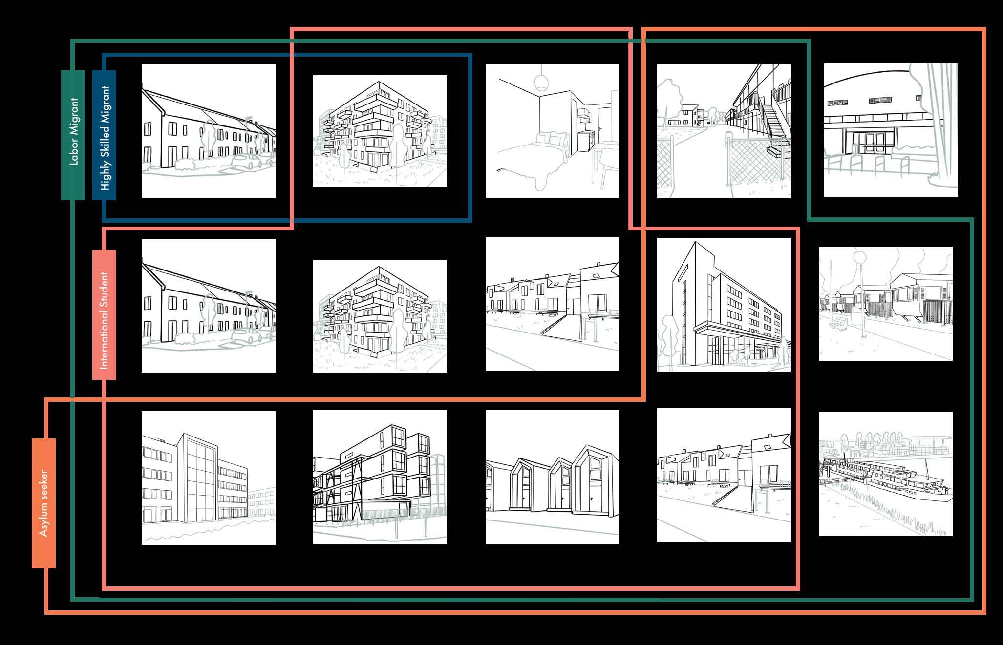 In the Netherlands, different groups are often approached separately when it comes to housing. Yet, if we look more closely, many face the same difficulties in finding a suitable home. Because of the strained housing market, people often end up in similar, less-than-ideal solutions, choices made out of necessity rather than preference. What these groups have in common is that they mainly consist of single-person households looking for a small apartment, with either a shared or private living space. By focusing on creating welldesigned homes, we can respond to the needs of asylum seekers and many other groups alike, while moving beyond the labels that currently divide them.