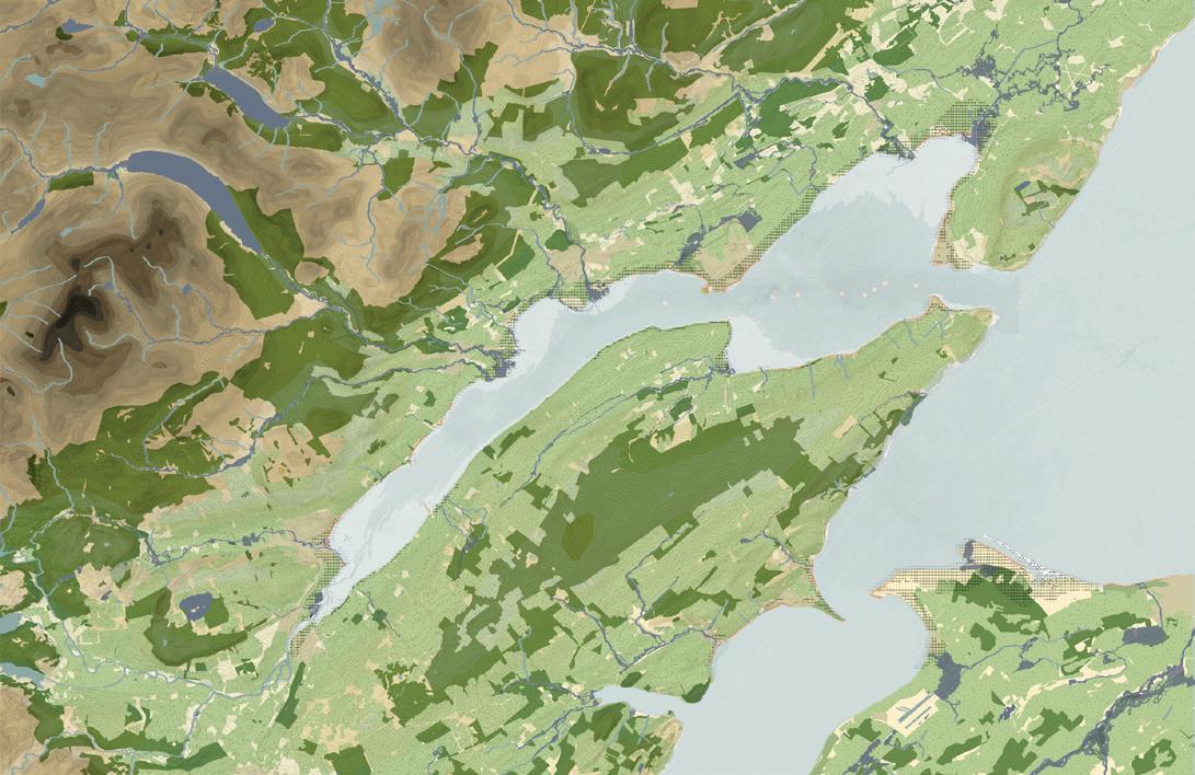 As the heights descend, the roughness softens, giving way to broadleaf woodlands to inhabit the western slopes overlooking the Cromarty Firth. The broadleaves woodlands form a peaceful and robust structure in the landscape.