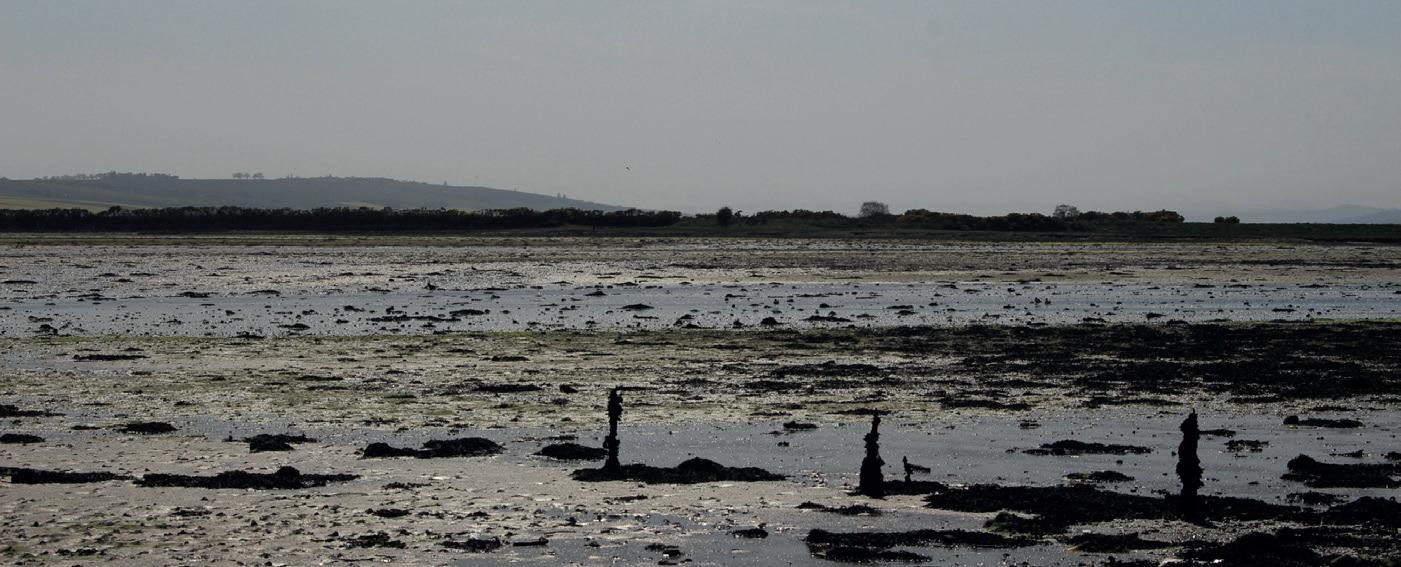 On the other side, the tides move in and out revealing the hidden stages of the tidal flats. Old relicts lie scattered: traces of long-forgotten interactions with the Firth.