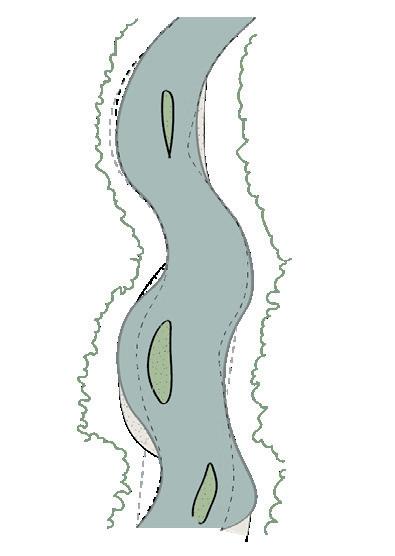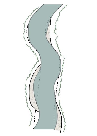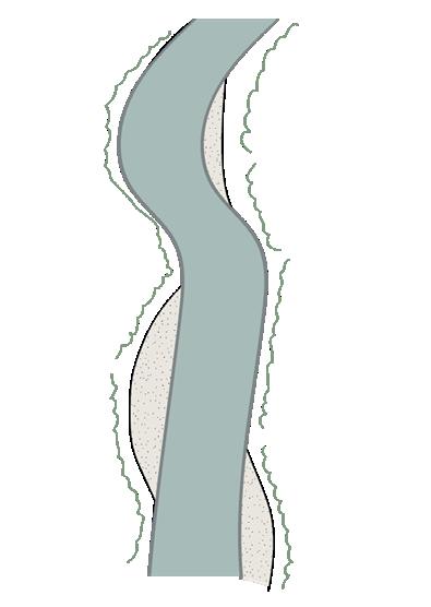 Flowing along with the gradient of landscape types, the rivers make their way downstream. The forest tames the water streams of River Averon as they descend the slopes. Upstream, the river carves into its banks, shaping the landscape through the force of its river flow.