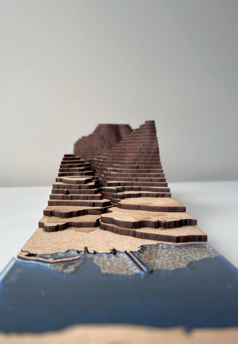 Om de genius loci van de plek te ontdekken en te ontmoeten was een onderdompeling van piek tot kustlijn in het gebied cruciaal. Mijn reis toonde een gelaagd landschap dat gevormd is door de geologie, geschiedenis en menselijke ingrepen. Relicten van verschillende tijdslagen zijn her en der zichtbaar. De zachtheid van de rivier begeleidende bossen, vergezichten over het landschap door de natuurlijke hoogte en de luwte van het gebied staan in contrast