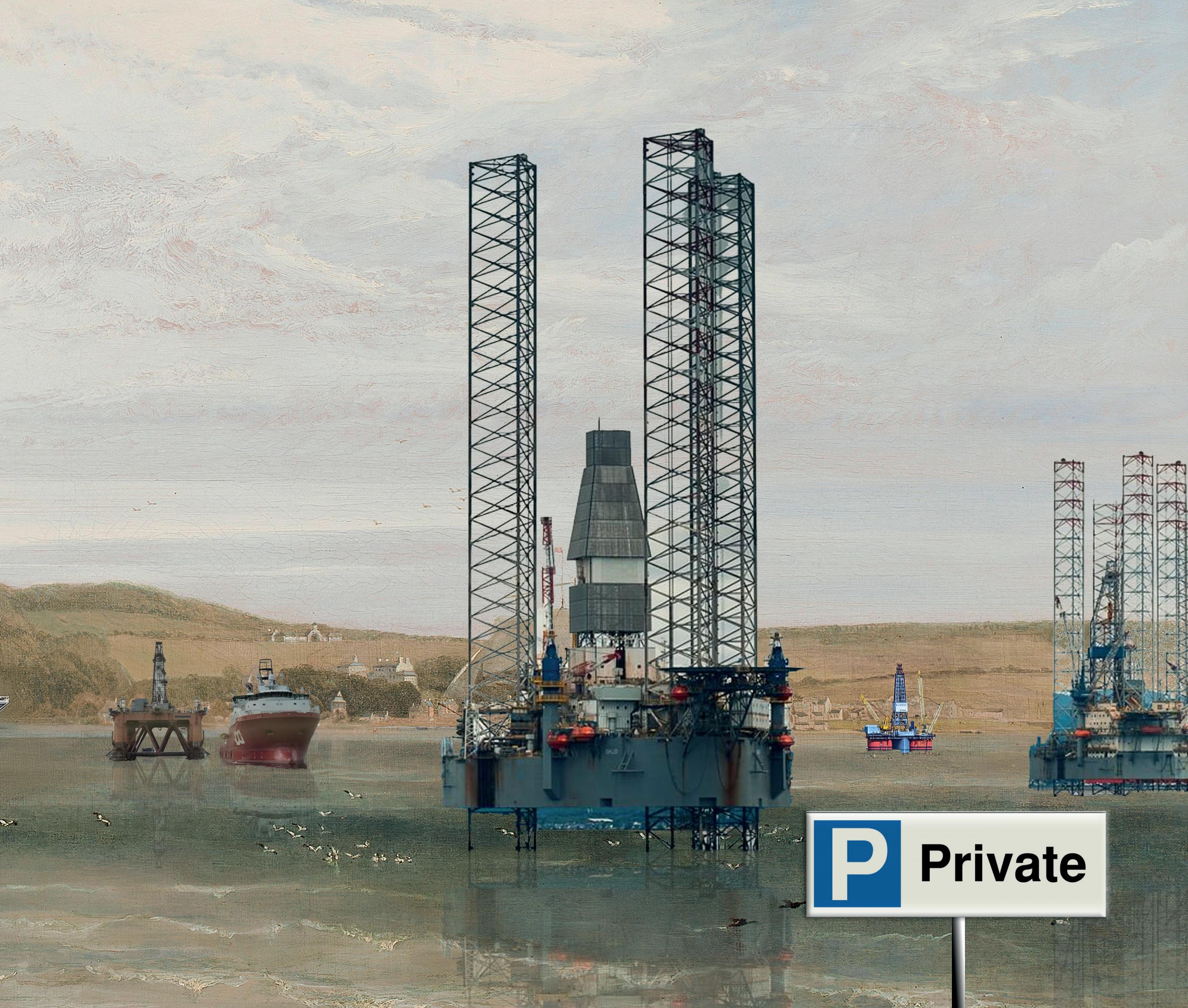 The glacially shaped, deep and sheltered waters of the Cromarty Firth flow to the neighbouring Moray Firth. Over time people have settled on the gentle slopes next to the Cromarty Firth. Historically, this region has known different identities and significant transformations. Once a local agricultural landscape with crofting traditions, has faded due to global industrial expansion. The current contrast between the natural conditions and the towering oil rigs over the waters of the firth is fascinating. It made me wonder: what is the identity of this place and what will the genius loci of this area become once the oil era ends?