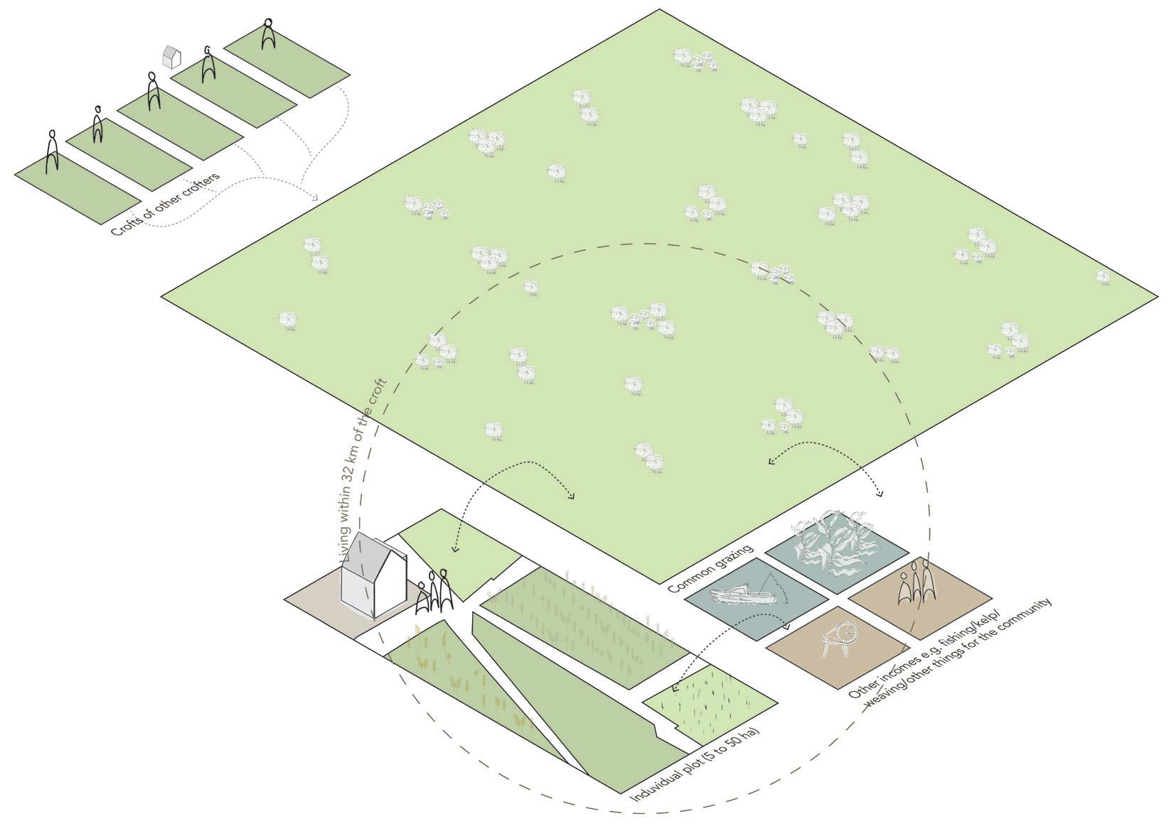 The individual crofts will restore the sense of place while addressing local issues. Together, they create a unique landscape, unified by its variation. Socially, they are connected as a wider community, while fine-scale connections are being made within the local crofting neighbourhoods.