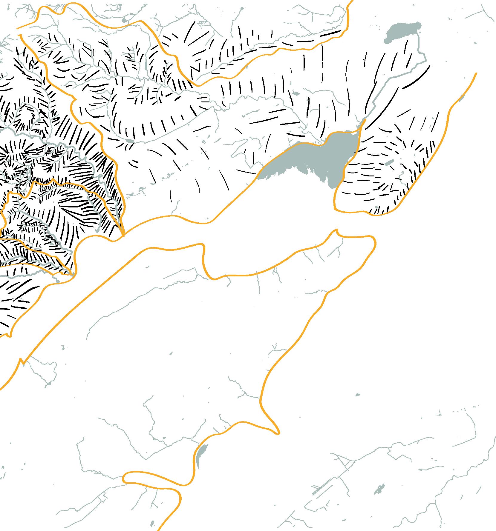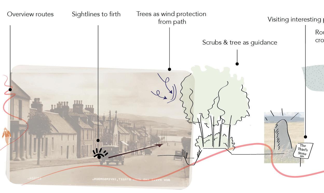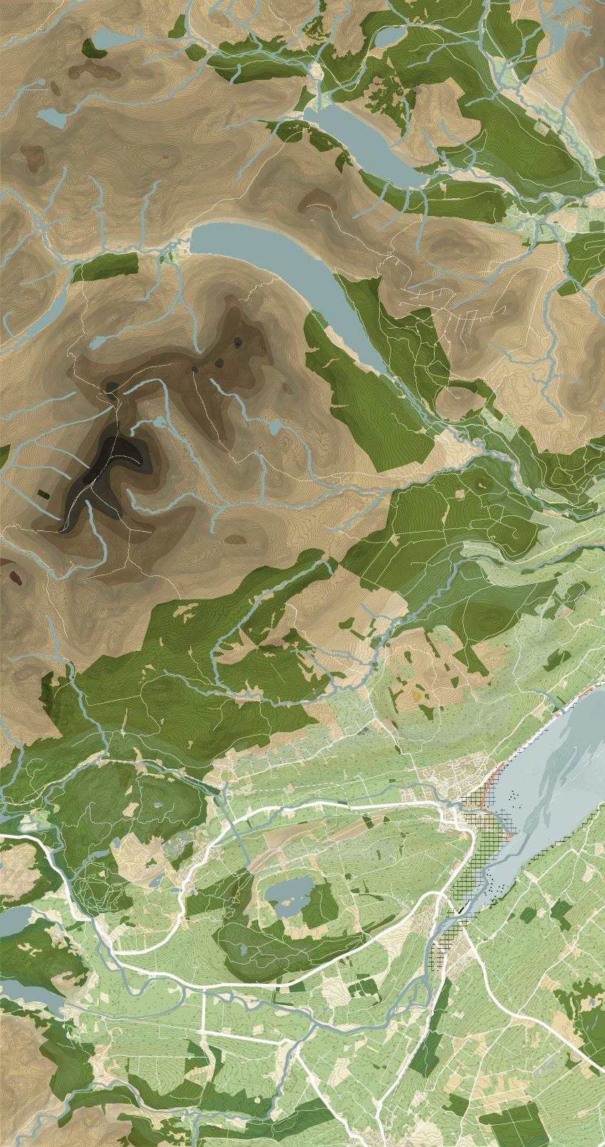 To discover and encounter the genius loci, a full immersion from peak to edge was essential. My journey from the top of the Highlands to the water of the firth revealed a layered landscape: one shaped by forces of nature, history, and human ambitions. Relicts of all those layers are still traceable. The landscape shows a gradient from peak to edge, but is disturbed by barriers that cut across the area. Industrialisation has stiffened the