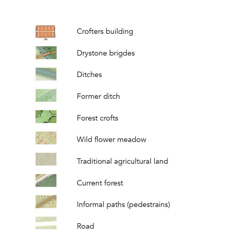 Crofting vormt de basis voor de hernieuwde verbinding met het water en het lokale landschap. Door dit kleinschalig gemeenschappelijk landbouwsysteem, wat diepgeworteld is in de Schotse Hoogland cultuur, te interpreteren worden de verloren relaties hersteld. Kleine crofts en gemeenschappelijke commons vormen de basis van een divers en verbonden landschap waarbij de natuur en de gemeenschap worden herontdekt.