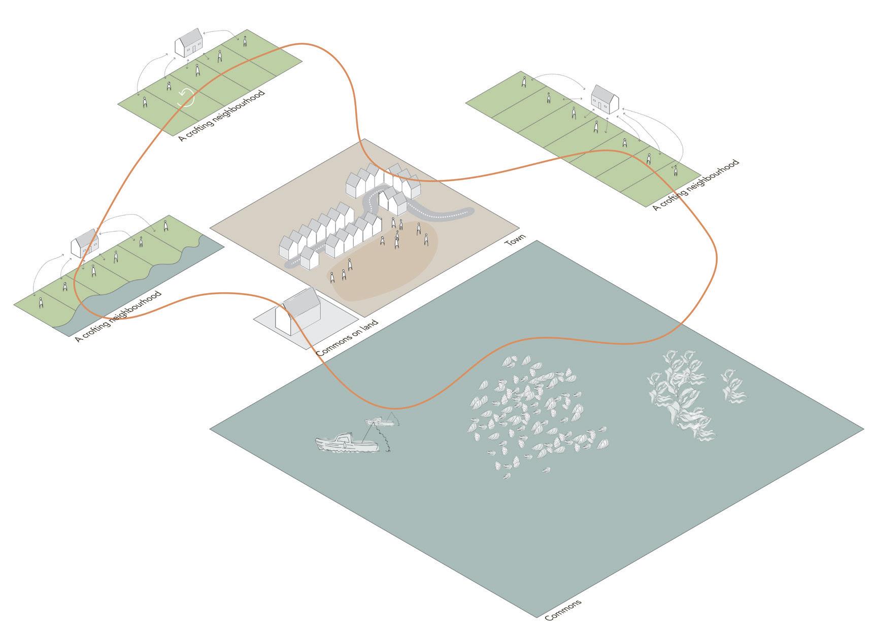 Crofting forms the foundation for how this reconnection with water and the local landscape will unfold. This typical Scottish small-scale communal agricultural system, is adapted to the Cromarty Firth. Small crofts and commons form the base of a new diverse connected landscape. The lost relationship between the villages and the water will be rewoven, allowing nature and community to rediscover one another with a cycle of connection and growth.
