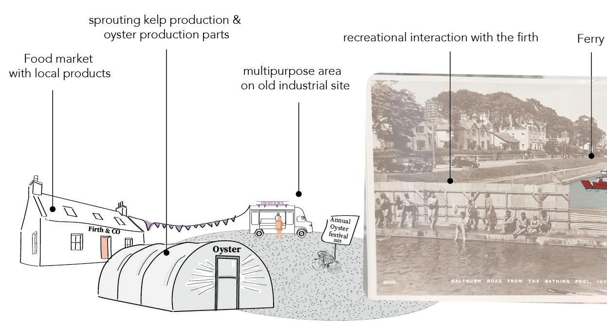 Out of those fieldtrips, the project goal emerged: to restore and revitalise the physical and emotional relationship between the people and the firth, thereby creating a new identity in the post-oil future. Where the water and the land meet, new relationships will be woven.