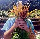 CSA members Julia Van Walraven (right, top right) and Qurban Naismith (above) show off their hauls from the community farming program.