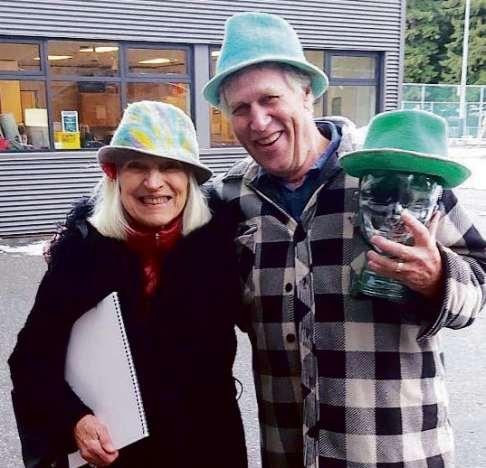 Ruben’s handmade hats modelled by their new owners: Paul Hoosen and Monique Dauchot, at the CSA Craft Fair. Ruben’s Hats will be for sale at the Winter Farmers Market & Craft Fair / Sarah Haxby photo
