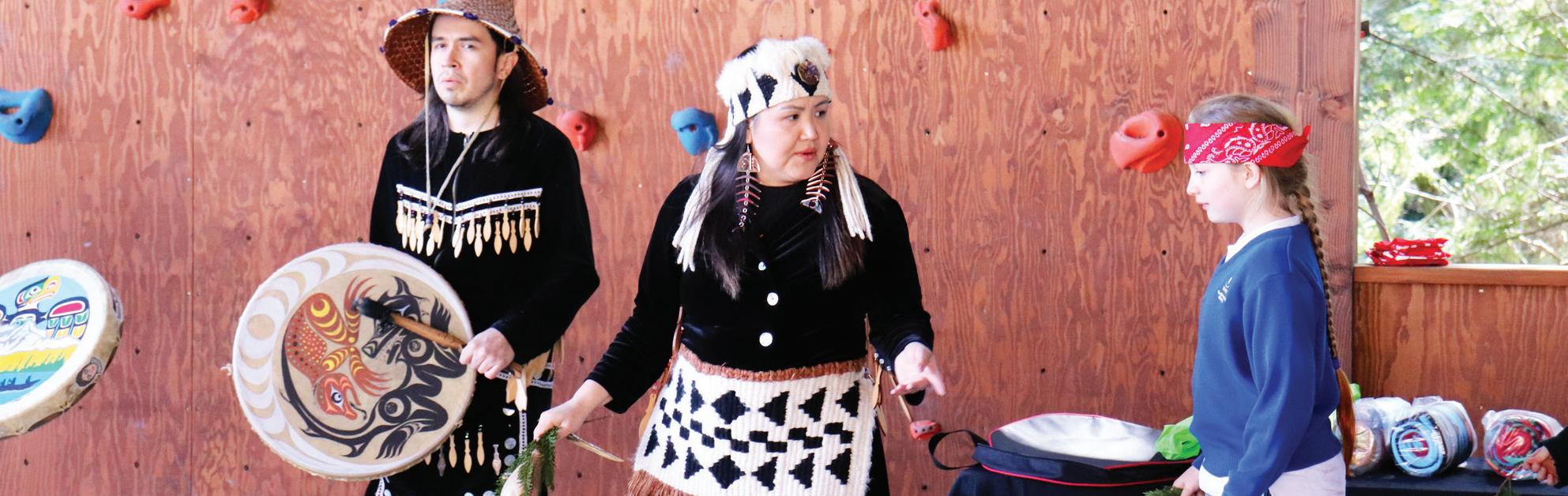 Island Pacific School held a blessing ceremony on April 10 for the new Colin Ruloff Community Field House at the school Bob Baker (S7aplek) and the Eagle Song Dancers (Spakwus Slolem) performed the blessing on behalf of Squamish Nation. The space has already played host to many school and community events since being completed last year, and will be the site of many more Island events for years to come, including a dance party at the end of next month. / Jen Henrichsen & Julia McCaig photos