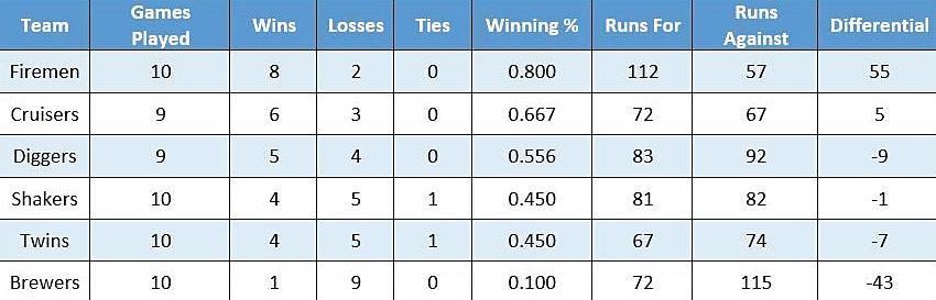 That ideawentout the window next inningthoughasthe teams combinedfor 9runs.After 5itwas 10-8 for the Diggers, and after 6the Diggersmaintained theslimmest of leads at 14-13. TheBrewers needed arun in the 7th to keep the game alive, and they gotitcourtesyofJames Winckler,who reachedonaleadoff walk and waseventuallybroughthome by Pete Scott. Ascoreless