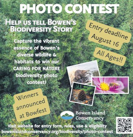 Visit the Bowen Island Conservancy website for information on the ‘Caring for Nature’ initiative, and the entry form, rules, use and eligibility for the Photo Contest, at bowenislandconservancy.org/biodiversity