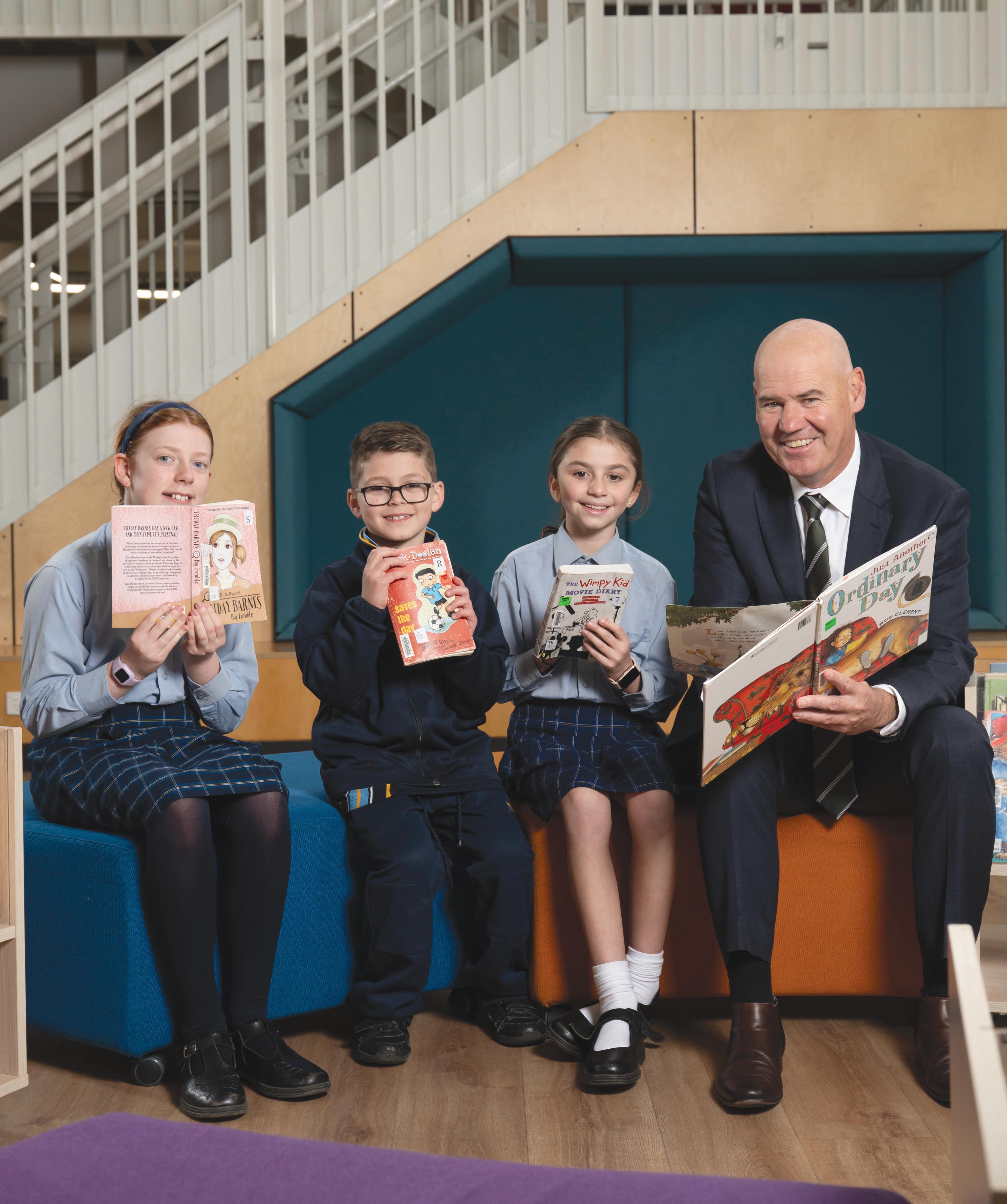 CESA EXECUTIVE DIRECTOR DR NEIL MCGORAN AT ST JOSEPH’S SCHOOL, WEST HINDMARSH, WITH STUDENTS EVIE, ROMEO AND EVIE. PHOTOGRAPHY: NAOMI JELLICOE