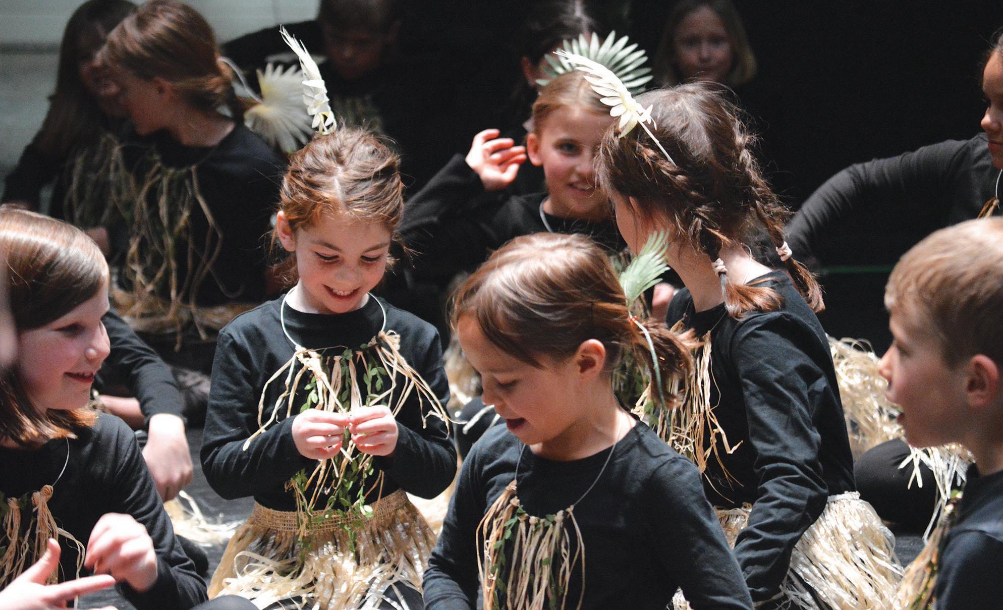 kindergarten class, is the stage manager, calling lighting and sound cues through a headset. Bringing a large number of young performers together is no easy task. To accomplish it, Higgins creates two choruses, one of kindergartners and second graders and one of first and third graders. Each group appears in the opening number and finale, and are showcased in two other song and dance numbers. Fourth and fifth graders audition for the larger
