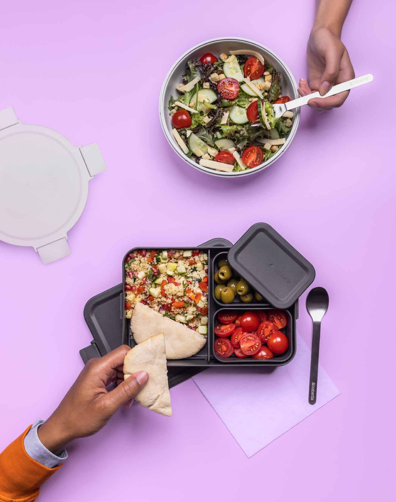 sur le pouce @kokerellen MAKE & TAKE SET DE 3 COUVERTS Dark Grey 9,95 € www.brabantia.com/make-take MAKE & TAKE LUNCHBOX PLATE Light Grey 9,95 €