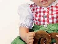 Le petit « Antoine » porte èrement sa première grenouillère en cuir et se réjouit énormément d’aller à la kermesse locale, dans la poussette avec ses parents. Maman lui a cousu un joli bonnet avec un écusson « Lausbub » (« Garnement »), qui va parfaitement avec sa grenouillère. Lorsque « Antoine » reçoit également une nouvelle tétine de la part de papa, son bonheur est parfait! « Charmant Antoine » est une adorable poupée créée par la célèbre artiste Linda Murray. « Antoine » est livré chez vous avec une grenouillère de cuir soigneusement taillée, un bonnet brodé et une tétine assortie. Grâce à l’utilisation du vinyl RealTouch® unique en son genre, vous serez étonné par la douceur de la peau d’« Antoine ». Au toucher, elle ressemble à la peau d’un vrai bébé. Taille : 45,7 cm N° d’article : 722-SUP09.01 • € 169,80 (payable également en 4 mensualités de € 42,45) plus € 9,95 expédition et service