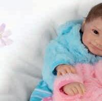 Ces bébés poupées jumelles très réalistes de l’artiste Ping Lau enthousiasment par leurs détails peints à la main, leur peau en vinyl RealTouch® souple et leurs cheveux enracinés à la main. Leur corps en tissu mobile les rend particulièrement câlines. Chaque détail est conçu avec soin, des tenues sur mesure de Victoria Jordan aux vestes en peluche extra-douces avec des motifs de petits chiens et de chatons. Taille : 38,1 cm