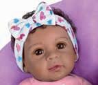 Fabriquée à la main en vinyl RealTouch® qui reproduit la peau de bébé de manière incroyablement réaliste. Les cheveux blonds paille sont enracinés à la main mèche par mèche et la coloration manuelle soignée complète l’impression de réalisme. L’ensemble en deux parties est richement orné de strass et de paillettes. Taille : 42 cm
