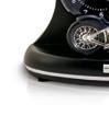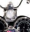 Cette horloge de bureau au noir élégant dispose d’un a chage de l’heure et d’un thermomètre. Les deux instruments de précision à la nition chromée brillante rappellent le compteur de vitesse et le compte-tours d’un chopper. Le thermomètre indique la température aussi bien en degrés Celsius qu’en Fahrenheit. Au-dessus des instruments se dresse un volant de chopper de couleur argentée avec un phare brillant dans des tons chromés éclatants. Mais la cerise sur le gâteau de cette horloge de bureau exceptionnelle est sans aucun doute le modèle d’un chopper américain, modelé et coloré à la main. L’édition est strictement limitée à 295 jours de production dans le monde entier.