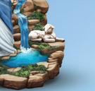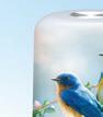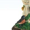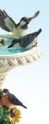 La base de l’oiseau est une véritable « eau », dont les détails ont été réalisés à la main à partir d’une pâte à sculpter d’artiste. Autour de l’abreuvoir à oiseaux s’ébattent le tarin doré, la bergeronnette, la sittelle, le cardinal rouge, la mésange et deux rouges-gorges. La ne coloration à la main donne vie à chaque petit détail. L’édition est limitée à 295 jours de production. Socle en nition acajou. Taille : 16,5 x 22,9 cm (l x h)