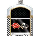 Le pendentif Dog Tag est fabriqué à la main en acier inoxydable et décoré d’accents en or 24 carats. Sur un fond de bre de carbone noire, l’inscription Corvette reconnaissable entre mille se présente sur le devant du pendentif. Le logo Corvette® et les mots « An American Legend » (une légende américaine) sont gravés au dos. Pendentif : 5,1 cm ; longueur du collier : 61 cm