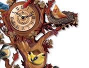 Horloge murale en bois avec sept différents oiseaux chanteurs