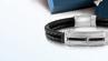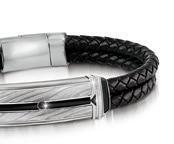 Bracelet en cuir véritable avec cylindre en acier inoxydable et logos Statement
