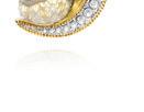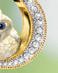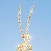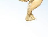 Le pendentif est astucieusement fabriqué à la main avec un placage en or précieux et recrée le fascinant colibri en vol, comme s’il planait au-dessus d’une eur. Les ailes délicatement modelées battent et vibrent avec vos mouvements, captant la lumière à chaque petit battement. Deux véritables diamants blancs scintillent comme les yeux du colibri. Le dos et la queue reproduisent la texture de vraies plumes.