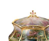 Avec cette boîte à musique, pro tez d’un petit bijou qui respire le calme et l’inspiration – décoré d’un motif omas Kinkade. Fabriquée en porcelaine cuite trois fois avec des accents dorés précieux. Limitée à 95 jours de cuisson. Joue la mélodie : « You’ll Never Walk Alone ». Diamètre : 9,5 cm