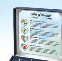 Réjouissez-vous d’un ensemble de quatre pendentifs en forme de cœur en verre taillé à la main, à l’intérieur desquels se trouve un portrait d’oiseau unique fait par les frères Hautman, célèbres pour leur art animalier réaliste. Au dos de chacun des pendentifs gure un mot d’inspiration et, en dessous, la signature de l’artiste. Les œillets et le collier sont plaqués argent. Livré dans une élégante boîte cadeau avec une carte d’information sur chaque espèce d’oiseau (en anglais). Hauteur : 2,5 cm; longueur du collier : 45,7 cm
