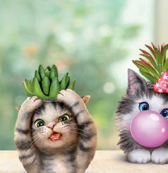« Chatons Jardiniers » Collection de gurines de chats fabriquées et peintes à la main