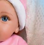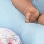 Die rosigen Wangen, die winzigen Finger und Zehchen, der zuckersüße Gesichtsausdruck – alles an „Alex“ ist so realistisch von Hand aus RealTouch®-Vinyl gefertigt und bemalt, dass man ihn am liebsten in den Arm nehmen und nie wieder ablegen möchte. Die zarten, lebensechten Haare sind von Hand eingesetzt, während sein weicher und beweglicher Sto körper das Gewicht eines echten Babys simuliert. „Alex“ trägt ein für ihn maßgeschneidertes Ä chen-Ensemble, bestehend aus einem Strampler mit Ä chenAufdruck, aufgestickten A engesichtern an den Füßen und einem dazu passenden Mützchen. Größe: 45,7 cm.