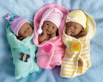 Diese kleinen Engel sind aus weichem RealTouch®-Vinyl handgefertigt. Mit nur 33 cm von Kopf bis Fuß, passen sie perfekt in Ihre Armbeuge. Inklusive miteinander harmonierenden Stramplern und GRATIS Babydecke. Größe: 33 cm
