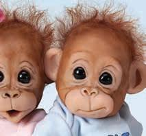 Orang-Utan Zwillings-Puppenpärchen der Künsterlin Cindy Sales