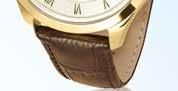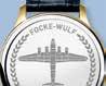 Das Zi erblatt zeigt die Fw 200 über einem Wolkenmeer in farbig brillanter Wiedergabe. Das kleine Sekunden-Zi erblatt darunter wird von einem stilisierten Flügelrelief umrahmt. Auf der Rückseite des kostbar mit Gold plattierten Edelstahlgehäuses ist die Grundrisszeichnung der „Condor“ eingraviert. Das Seiko VD78-Quarzuhrwerk garantiert eine langlebige und präzise Zeitnahme, während das dunkelblaue Echtlederarmband das elegante Erscheinungsbild perfekt abrundet. Gehäusedurchmesser: 4,2 cm; Umfang Armband:15 – 21 cm Artikel-Nr.: 522-FAN42.01 • CHF 179.80 (zahlbar auch in 4 Monatsraten zu je CHF 44.95) zzgl. CHF 8.95 Versand