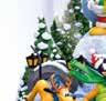 Diese wunderschöne Skulptur zeigt einen Schneemann mit einer echten Glaskugel, im Look von „gebrochenem“ Eis. Auf Knopfdruck leuchten die Lichter in der Glaskugel in fröhlich wechselnden Farben. Und auch die Baumspitzen im Hintergrund erzeugen eine stimmungsvolle Lichtatmosphäre. Aus Skulpturenguss handgefertigt und handbemalt. Höhe: 30,5 cm