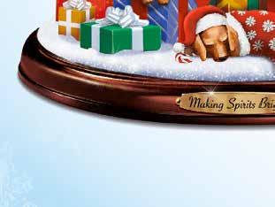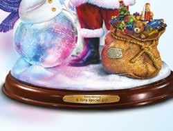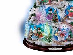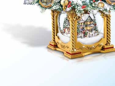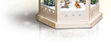 Ein leichtes Schütteln genügt, und die rührende Szene hüllt sich in sanftes Schneegestöber. Auf Knopfdruck leuchtet das Innere der Kugel auf, während acht Weihnachtslieder erklingen. Auf dem holzfarbenen Sockel be ndet sich ein sorgfältig von Hand bemaltes viktorianisches Dorf von omas Kinkade. Am faszinierendsten ist die nostalgische Eisenbahn, die ihre Runden um das Dorf dreht. Grösse: 13,3 x 17,8 cm (B x H)