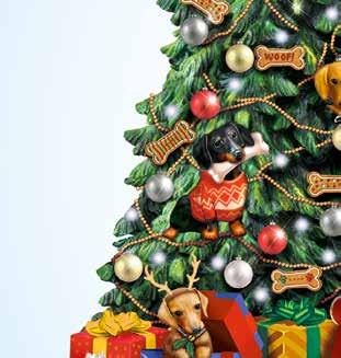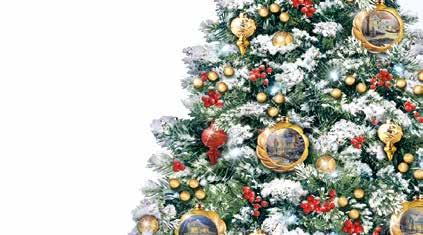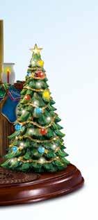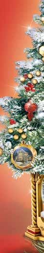 Der Baum ist naturnah aus künstlichen Tannenzweigen mit einzeln angefertigten Nadeln gestaltet. Sein Sockel aus Glas in Kristallschli zeigt insgesamt sechs farbintensive Weihnachtsszenen von omas Kinkade. Auf acht weiteren Christbaumkugeln sind die Werke des „Malers des Lichts™“ ebenfalls abgebildet. Blutrote Winterbeeren verstärken den Kontrast zu den „schneebedeckten“ Zweigen. Mit LED-Beuleuchtung zwischen den Zweigen, im Sockel und in der Sternenspitze. Auf Wunsch erklingt ein Medley aus acht unvergesslichen Weihnachtsmelodien, darunter „Jingle Bells“ und „O Tannenbaum“! Höhe: 40,6 cm