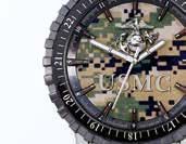 Die Sammleruhr präsentiert sich in einem Metallgehäuse mit dezenter schwarzer Ionenplattierung. Das innovative Feature ist jedoch der aufklappbare Schutzdeckel, der das Zi erblatt in Zielerfassungs-Optik schützt. Auf dem Deckel präsentiert sich das dynamische Relief eines Tarnkappen-Jets der neuesten Generation. Grösse: 36 x 46 x 14 mm (B x H x T); Handgelenkumfang bis 21 cm