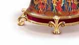 Wunderbare Musikdose zu Ehren der Heiligen Jungfrau Maria. Dieses einmalige Schmuckstück ist mit dem Motiv des Künstlers Hector Garrido und 13 Schmucksteinen verziert. Im Innern ist zusätzlich ein handgefertigter Rosenkranz aus Glas und Zinn. Limitierung: 95 Brenntage. Melodie: Schuberts „Ave Maria“. Breite: ca. 9,5 cm