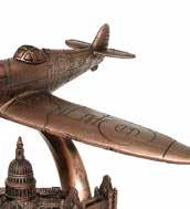 Die Sammlerskulptur ist aus Skulpturenguss in fachmännischer Handarbeit modelliert und von Hand in reichen Bronzetönen bemalt. Streng limitiert auf nur 4.999 Exemplare, präsentiert die Skulptur eine Spit re, die über ikonischen Londoner Wahrzeichen schwebt. Der holzgetönte Sockel ist mit einer messingfarbenen Plakette versehen, die an die Indienststellung der Supermarine Spit re im Jahr 1938 erinnert. Grösse: 18 x 20 x 18 cm (H x B x T)