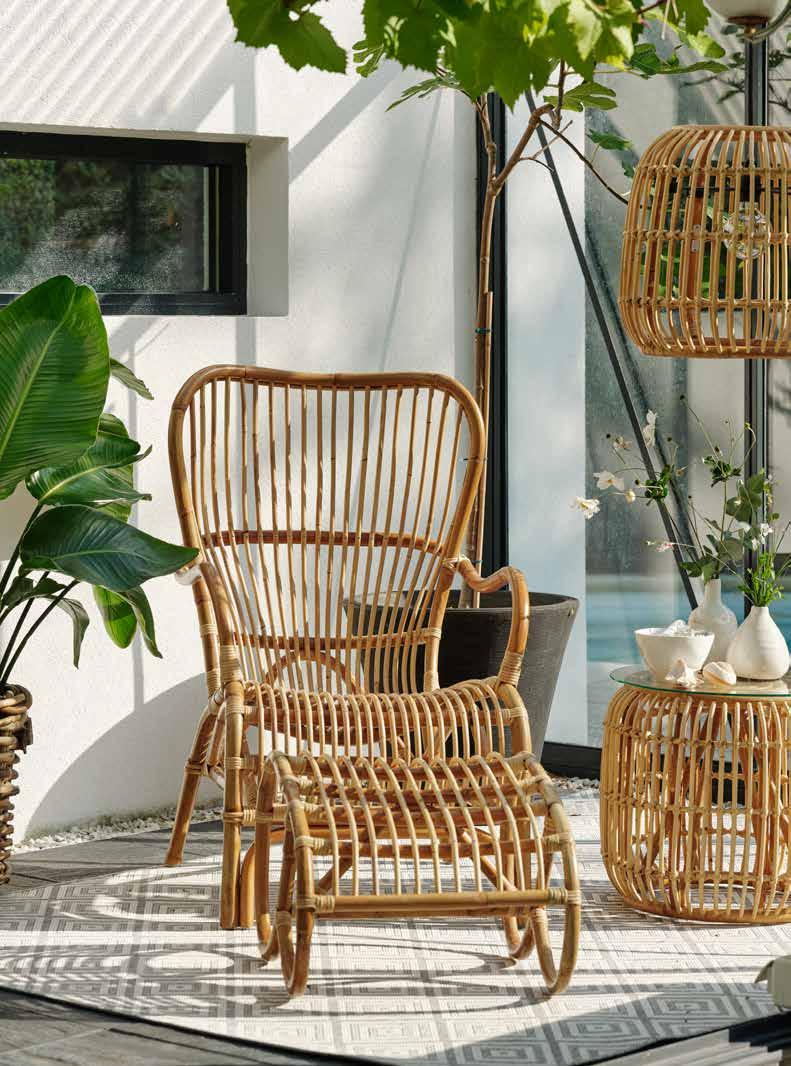 Natural rattan is plaited rattan where the shell has been retained, which gives a more natural colour and natural irregularities. Rattan furniture should be placed under a roof.