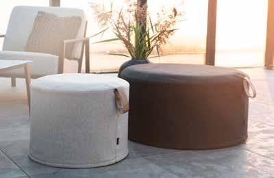 Snygg och skön sittpuff som också kan användas som bekväm fotpall eller praktiskt sidobord. Handtagen gör den lätt att flytta och placera. Vattentålig puff med allvädersskum.