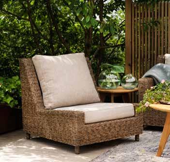 Bekväm, elegant och med en naturlig känsla. Covelo-serien har luftigt vävd konstrotting som bildar ett snyggt mönster. Dynorna är i slitstarkt vitt olefintyg och är väldigt bekväma. Alla delar kommer med sin ombonade känsla och passar utmärkt in i såväl lummiga bersåer som öppna trädäck. Finns även som karmstol och loungefåtölj.