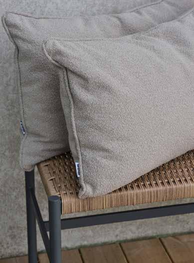Dekorativ kudde i bästa kvalitet för utemiljö med avtagbart och tvättbart olefintyg. Finns i flera färger och två olika storlekar.