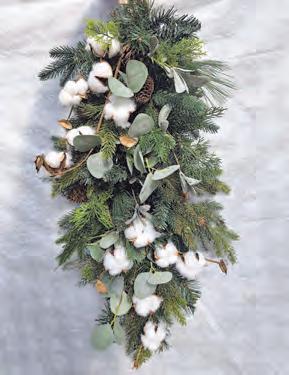 Add festive charm to your home with this unique vertical piece. Hang on your front door or under your house lights. This piece is made with fresh pine, balsam, cedar, faux cotton, or with berries and cones. Finished with accent roping at the top!
